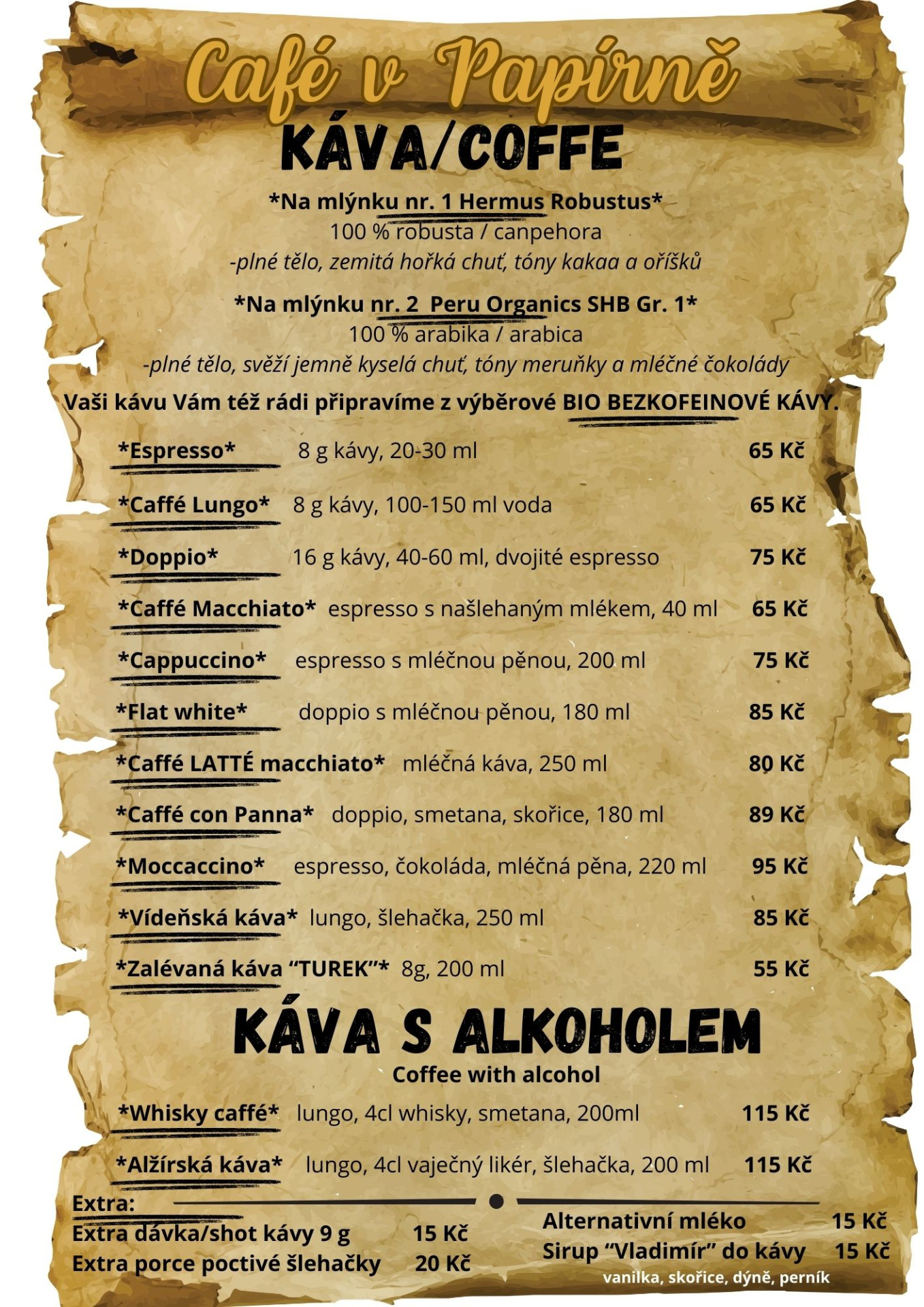 v našem kavárenském lístku